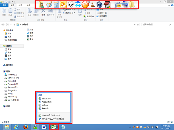對工作列上的圖示按右鍵時,就可以選擇最近開啟的文件了(如上圖中下方的 Excel)!