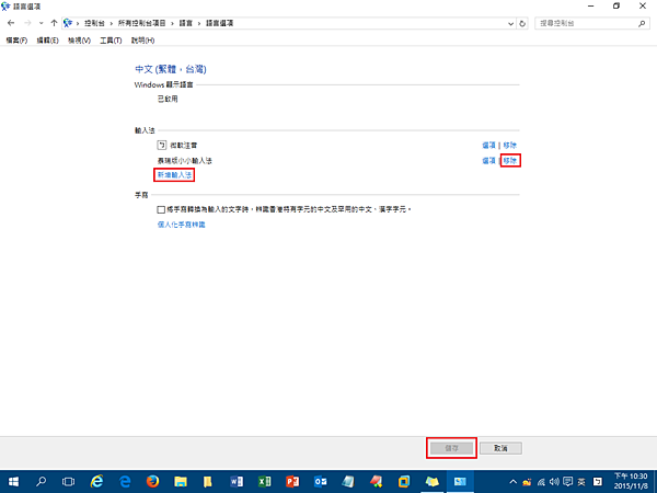 然後再點選【新增輸入法】,新增「泰瑞版小小輸入法」,回到下列畫面後,再按【儲存】即可。