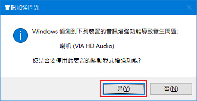 02. 開啟「聲音」選項時,系統可能會詢問以下問題,直接按【是】即可。