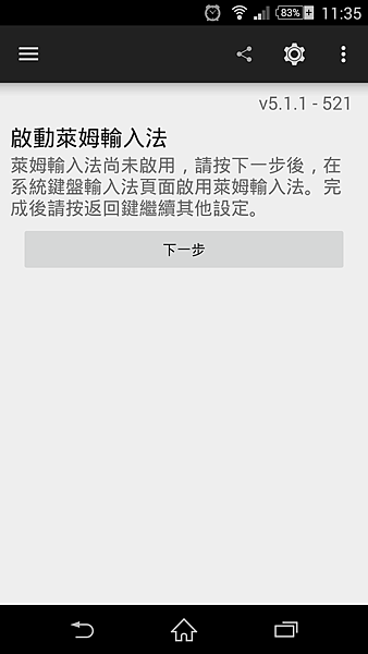 接下來,程式會引導使用者啟動萊姆輸入法,按【下一步】繼續。