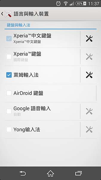 畫面再度切換至〝設置〞裡的「語言與輸入裝置」,點選【萊姆輸入法】。
