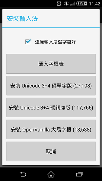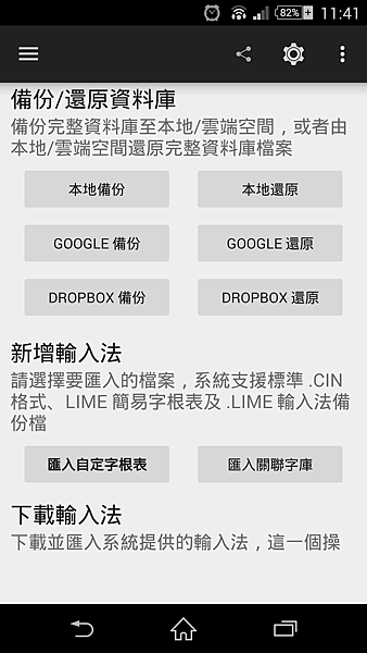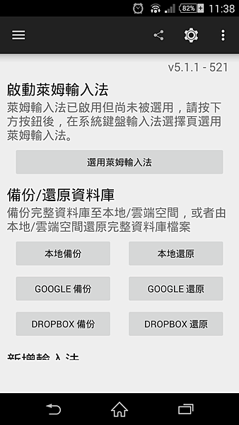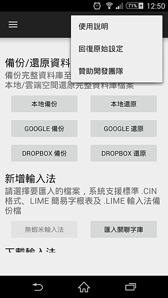 在下圖的畫面中,可以選擇「備份/還原資料庫」、「新增輸入法」…